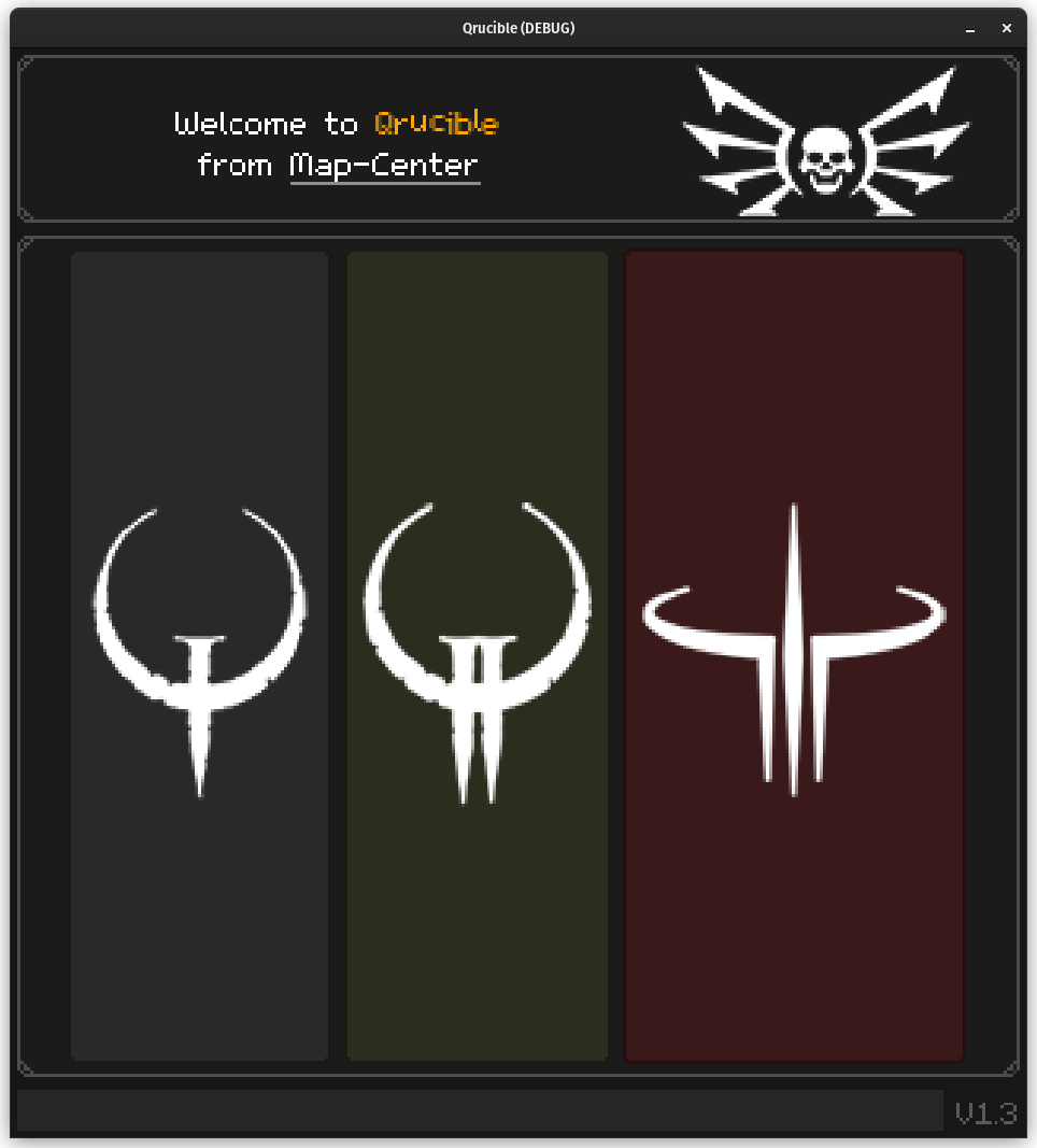 When you first start up Qrucible, you'll be presented with a choice. Which game are you looking to compile/build for? Make your selection and you'll be taken to that games options.