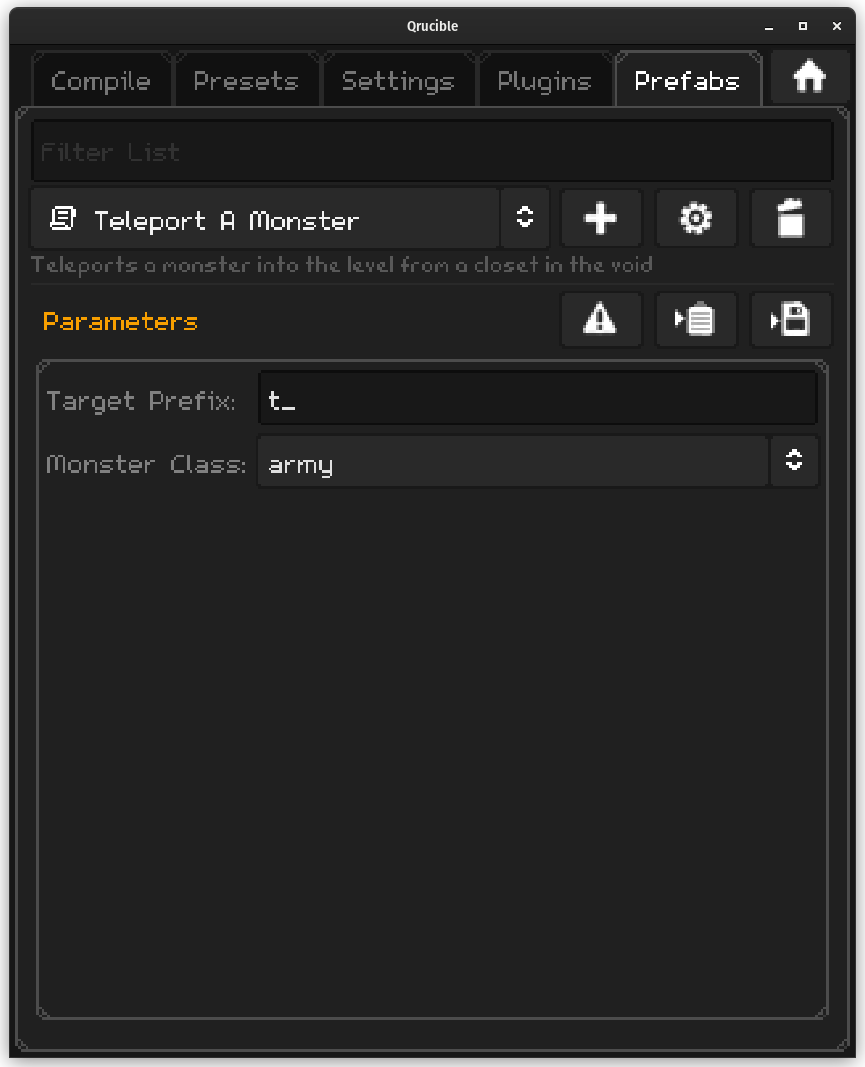 Back in Qrucible, I add a new prefab and I have a screen that looks like this: