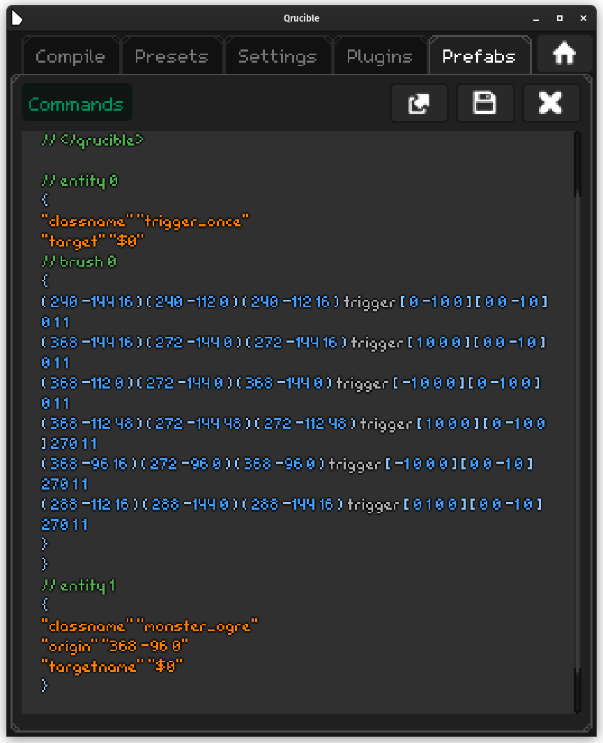 The one gotcha here is that you HAVE to save your level each time you paste one of these in so Qrucible will see the updated MAP file the next time you click the export buttons.